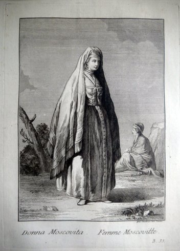 Racçolta di Stampe che representano Figure e Abiti di varie Nazione (1783-1791). B.35: Donna Moscovita.