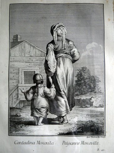 Racçolta di Stampe che representano Figure e Abiti di varie Nazione (1783-1791). B.40: Contadina Moscovita. | Libri antichi e moderni | Viero, Teodoro (1740-1819).
