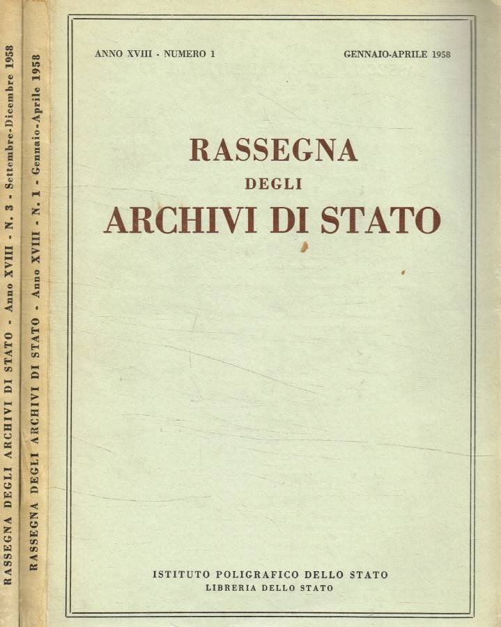 Rassegna degli archivi di Stato, anno XVIII, n.1, 3, Gennaio-aprile e settembre-dicembre 1958 | Libri antichi e moderni |