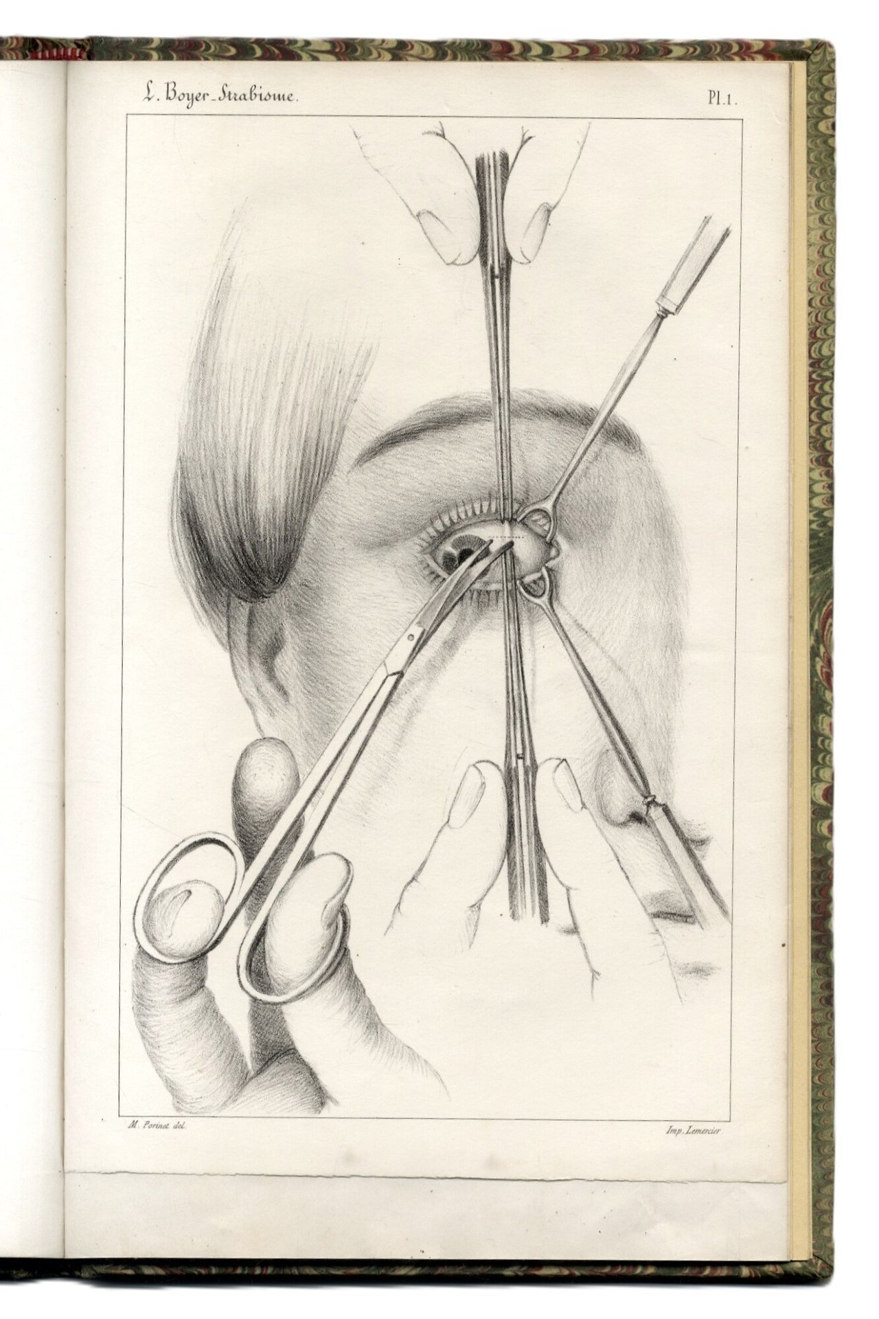 >in-8, pp.  (4), 114, (6 di tavole a piena pagina, spiegazioni e indice). Cartonato decorato moderno, titolo in oro su tassello in pelle lungo il dorso. Prima edizione di questa seconda memoria che illustra la correzione chirurgica dello strabismo, citando centinaia di operazioni effettuate e il loro esito, con due belle tavole in fine. Ottimo esemplare, lievissimo alone marginale.  Hirsch I, 667 et Daniel Albert, Source Book of Ophthalmology, 1995, n°292