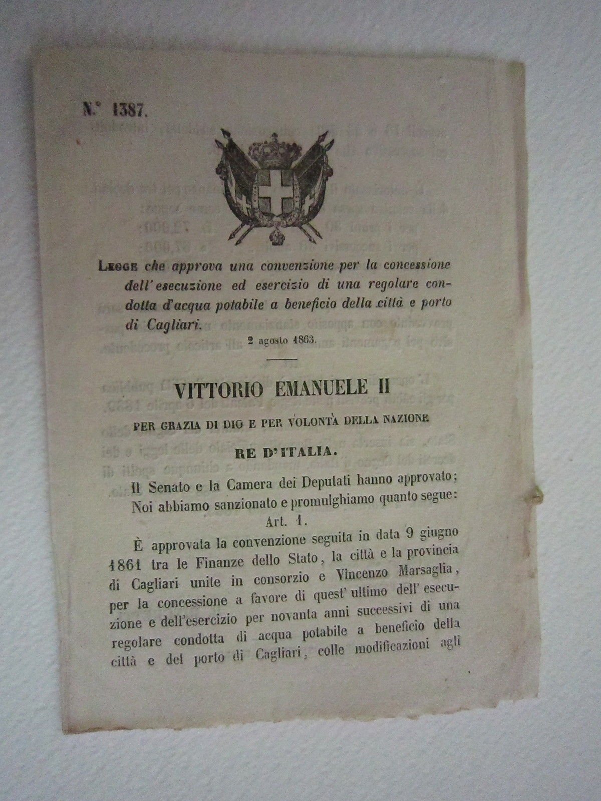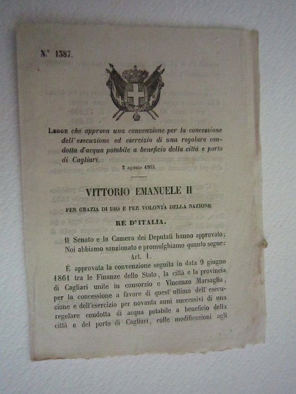 Regio Decreto Diritto Convenzione Concessione Cagliari 1863 Bollettino Leggi