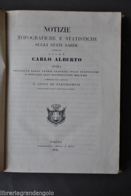 Regno Sardegna Carlo Alberto Notizie Topografiche Topografia Terraferma 1843 | Libri antichi e moderni |