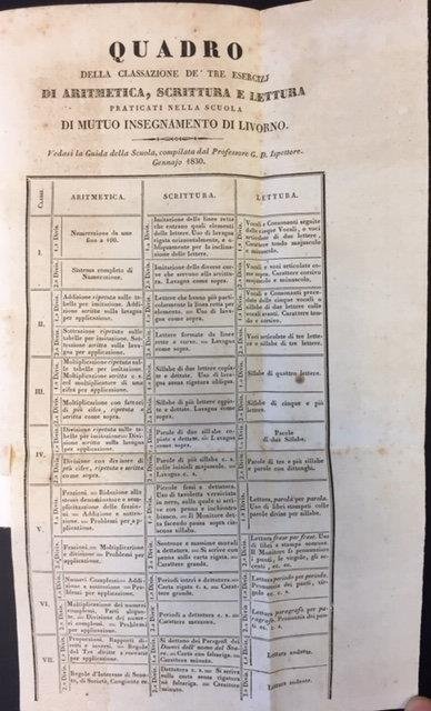 REGOLAMENTI E RAPPORTI DELLA SOCIETA' PEL MUTUO INSEGNAMENTO IN LIVORNO. 1833 circa.