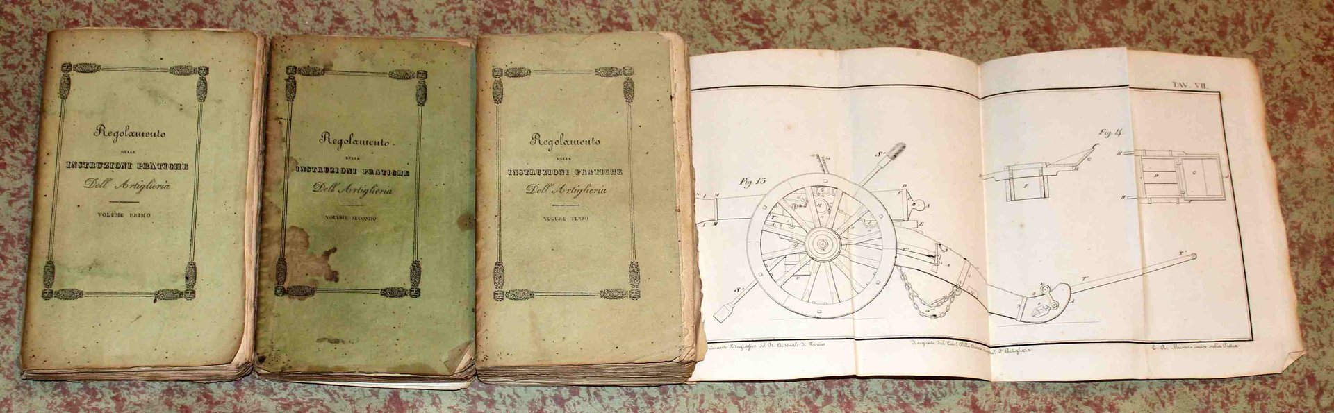 Regolamento delle istruzioni pratiche dell'Artiglieria. (Tre volumi) | Libri antichi e moderni |
