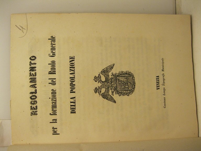 REGOLAMENTO PER LA FORMAZIONE del Ruolo Generale della popolazione. | Libri antichi e moderni |