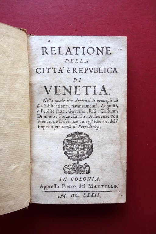 Relatione della Citt‡ e Repubblica di Venetia Pietro del Martello Colonia 1672 | Libri antichi e moderni |