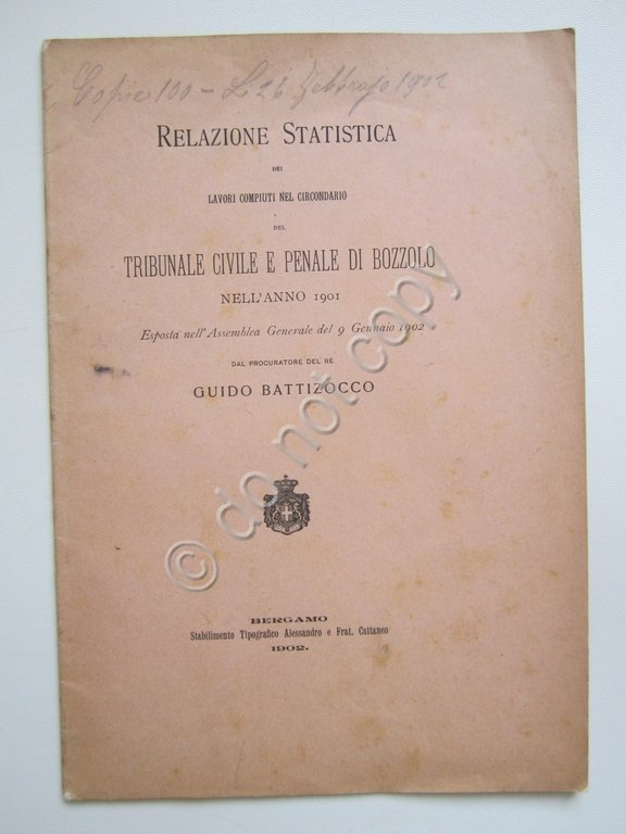 Relazione Statistica del Tribunale Civile e Penale di Bozzolo 1902 Battizocco | Libri antichi e moderni |