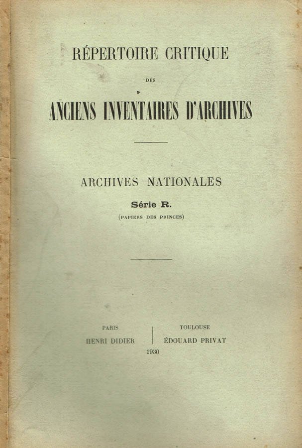 REPERTOIRE CRITIQUE DES ANCIENS INVENTAIRES D'ARCHIVES | Libri antichi e moderni |