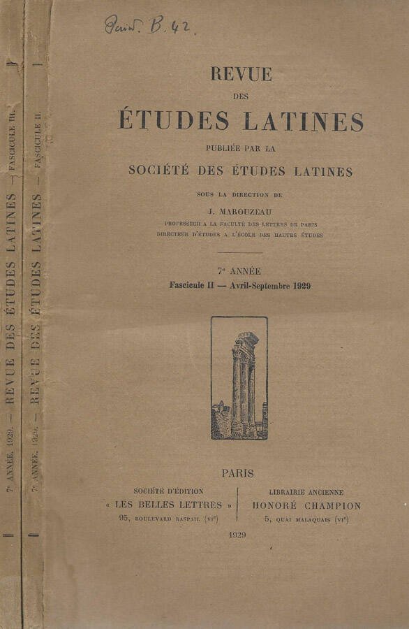 Revue des études latines publiée par la Société des études latines Fascicule II, III 1929 | Libri antichi e moderni | J. Marouzeau, Direction De