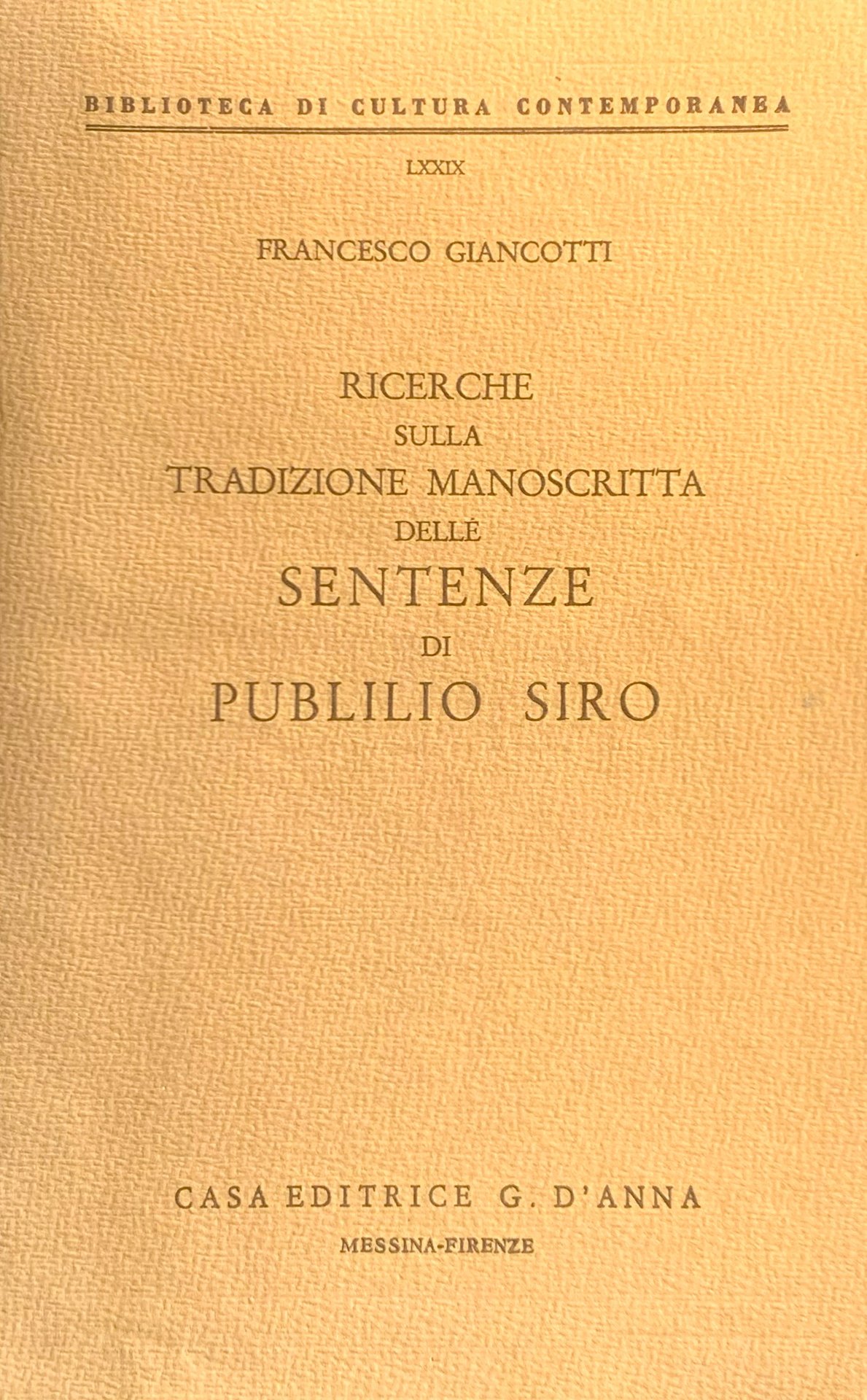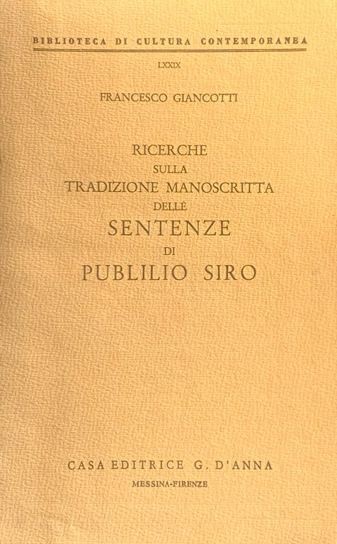 Ricerche sulla tradizione manoscritta delle Sentenze di Publilio Siro | Libri antichi e moderni | Giancotti, Francesco, ,Giancotti, Francesco