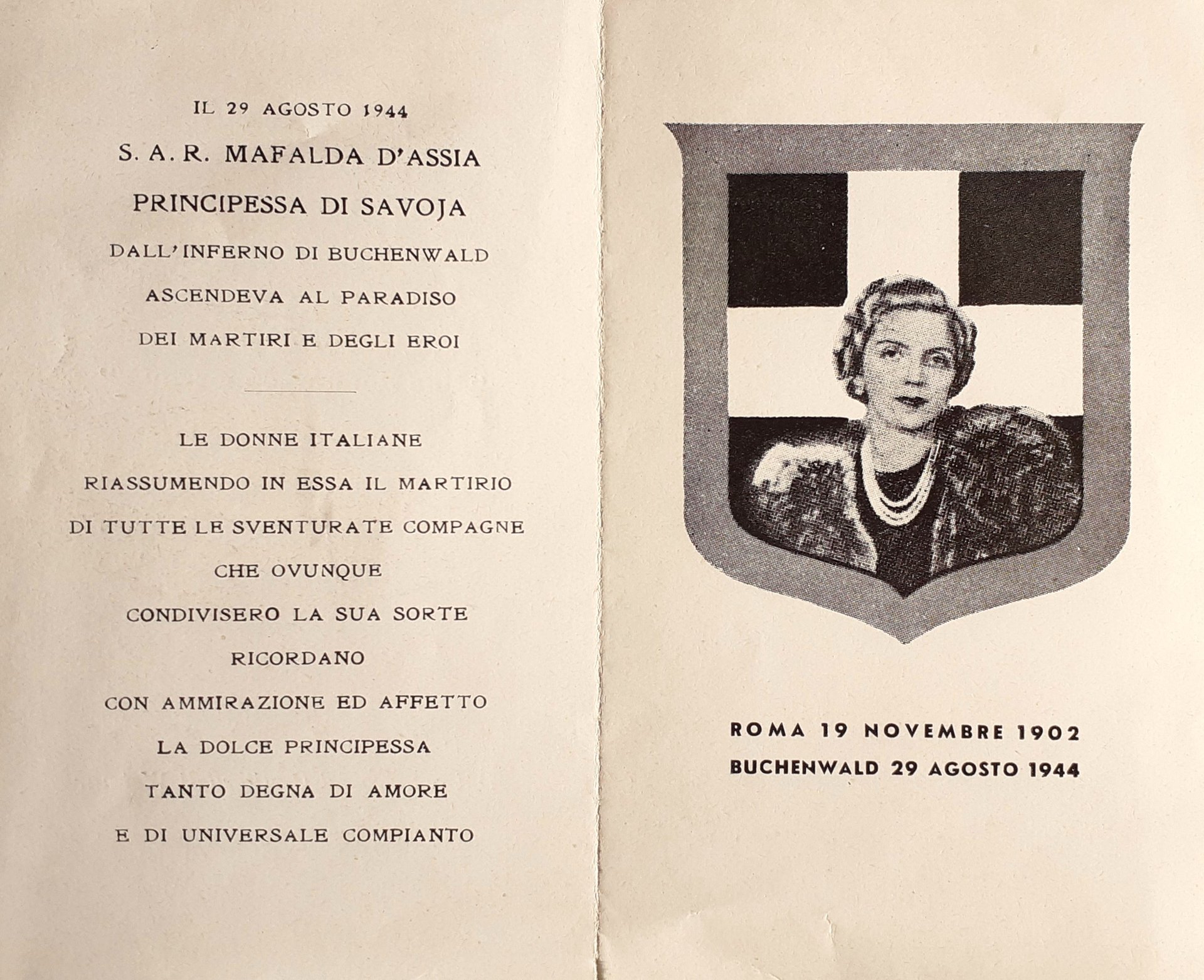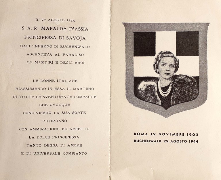 Ricordo funebre di S.A.R. Mafalda D'Assia Principessa di Savoia 1944