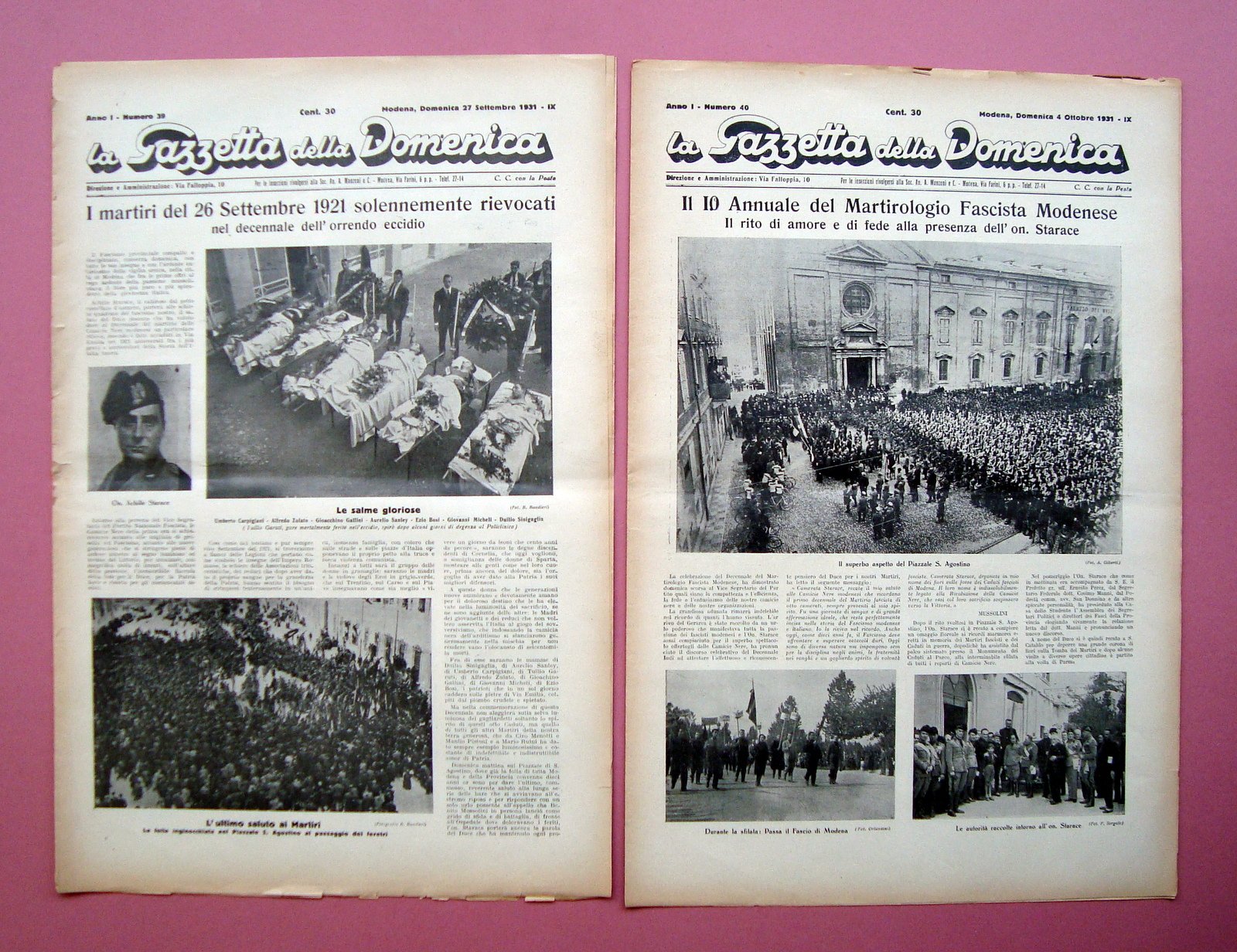 Rievocazione Martiri Fascisti Modena 1921 2 numeri Gazzetta della Domenica 1931 | Libri antichi e moderni |