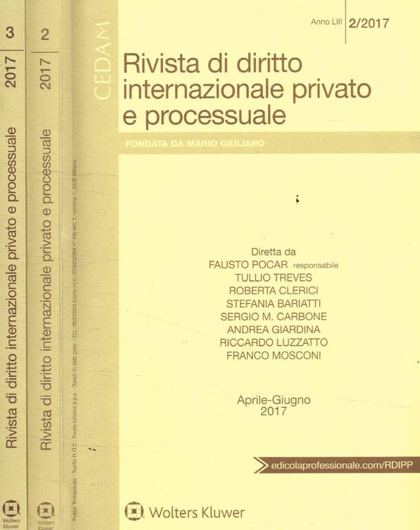 Rivista di diritto internazionale privato e processuale anno LIII, 2019, fasc.2, 3 | Libri antichi e moderni |