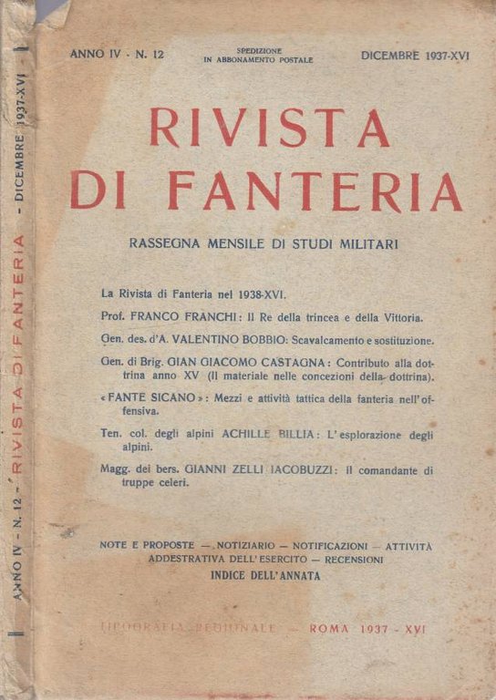 Rivista di fanteria anno IV, n 12, dicembre 1937 | Libri antichi e moderni | Rodolfo Corselli, Direttore Responsabile