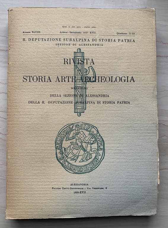 Rivista di Storia Arte Archeologia / Rivista di Storia, Arte e Archeologia. Bollettino della Sezione di Alessandria della R. Deputazione Subalpina di Storia Patria Annata XLVIII Aprile - Settembre 1939 - XVII Quaderno II-III | Libri antichi e moderni | AA.VV. (Viora, Prof. Mario: Direttore responsabile - Vergano,, ,AA.VV. (Viora, Prof. Mario: Direttore responsabile - Vergano,