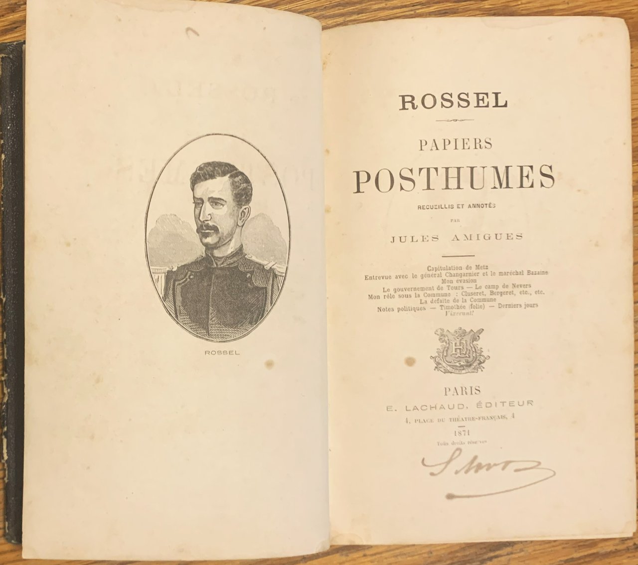 Rossel. Papiers posthumes recuillis et annotés par Jules Amigues | Libri antichi e moderni | Rossel (Rossel, Louis-Nathaniel): papiers posthumes écrits à, ,Rossel (Rossel, Louis-Nathaniel): papiers posthumes écrits ?