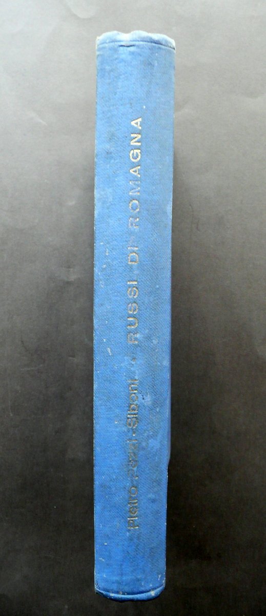 Pietro Pezzi - Siboni, † Russi di Romagna Villa - Castello - Citt‡ e le sue memorie (con novantotto illustrazioni) **** Secondo volume Seconda appendice - miscellanea, con tavola a colori ed illustrazioni **** Terzo volume Terza appendice - miscellanea, con due tavole a colori e settanta illustrazioni Soc. Tip. Forlivese (volume I) - Tip. Commerciale Russi (voll. II e III), 1949-52; cm 24x17; pp. 256 (vol. I); pp. 108-XVI (vol. II); pp. 168 (vol. III), tutti con numerose ill. in b/n nel t., e con in totale 4 begli stemmi fuori t., tutti colorati a mano (uno al vol. I, uno al vol. II, due al vol. III). Legatura in tutta tela con titolo impresso in oro al dorso e al piatto ant., taglio sup. verde. Presenza delle brossure ant. originali, ben conservate. Contropiatto ant. con applicato ex libris del precedente proprietario. Dedicatoria del volume I con dedica autografa dell'autore. Opera in tre volumi inseriti entro un'unica legatura. † Condizioni di conservazione Esemplare ben conservato con tracce d'uso; coperta con alcuni lievi aloni e accenni di sporco; angolo sup. del piatto post. con un leggero accenno di piega. Interni buoni con leggere bruniture. † Dettagliatissima opera di storia locale, corredata da ricco e ottimo apparato iconografico (illustrazioni fotografiche, piante, ritratti, ecc.). Opera non comune, molto rara nei tre volumi. Primo volume con dedica autografa dell'autore. † SETT129.L12782 N