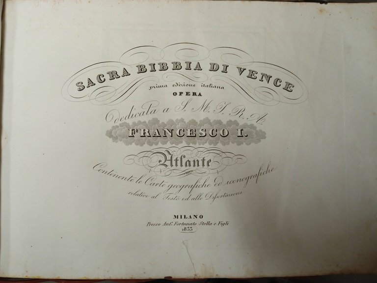 Bibbia di straordinaria rarità, 24 volumi + Atlante iconografico, stampati tra il 1833 (anno di stampa dell'atlante) fino al 1837. Divisi in testo e dissertazioni, i volumi sono tutti saldamente rilegati, titoli in oro lungo i dorsi, le copertine presentano tutte graffi e/o abrasioni varie dovute al tempo e alla conservazione.