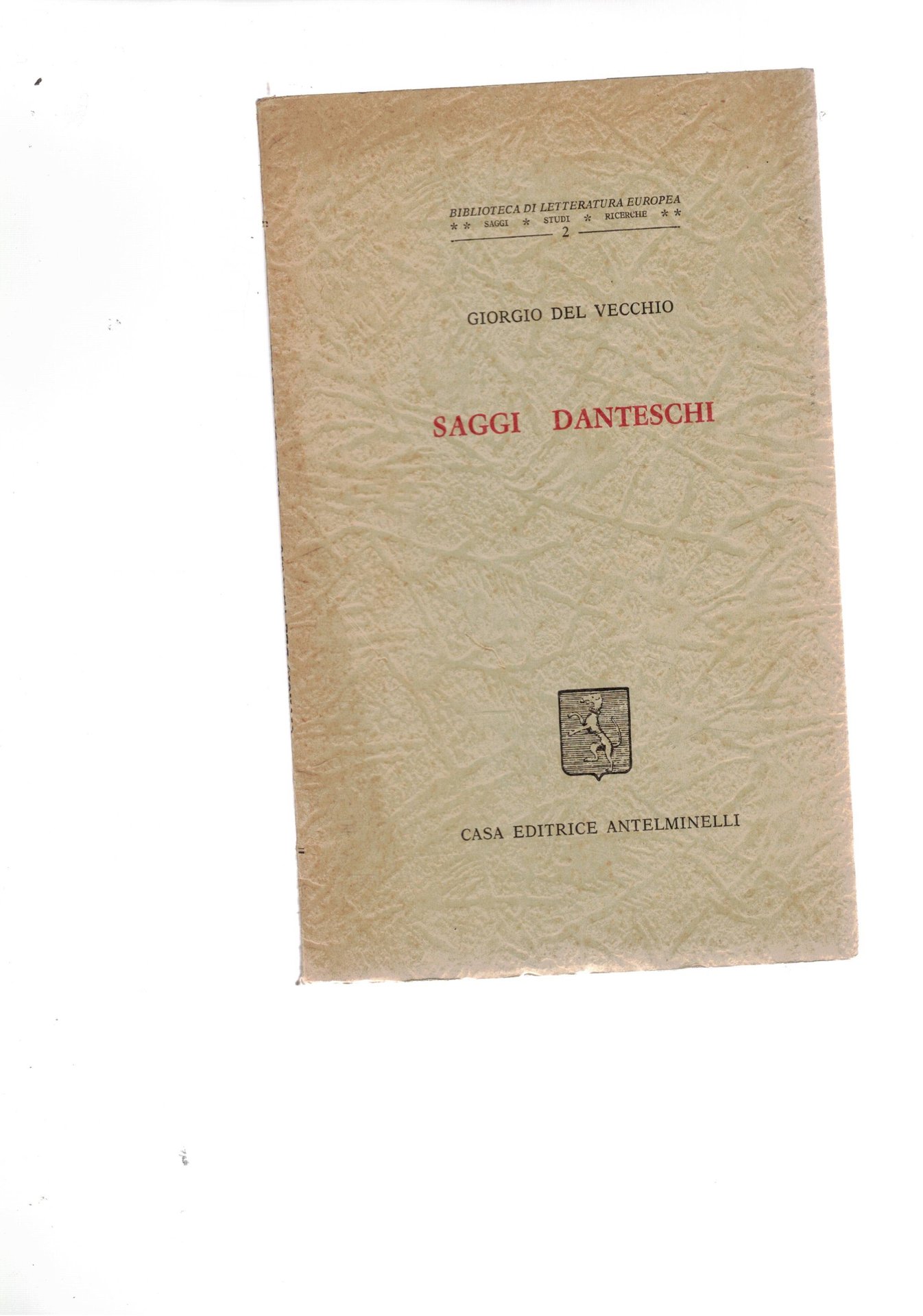 Saggi danteschi. Coll. Biblioteca di Letteratura europea (n° 2). | Libri antichi e moderni | Del Vecchio Giorgio.