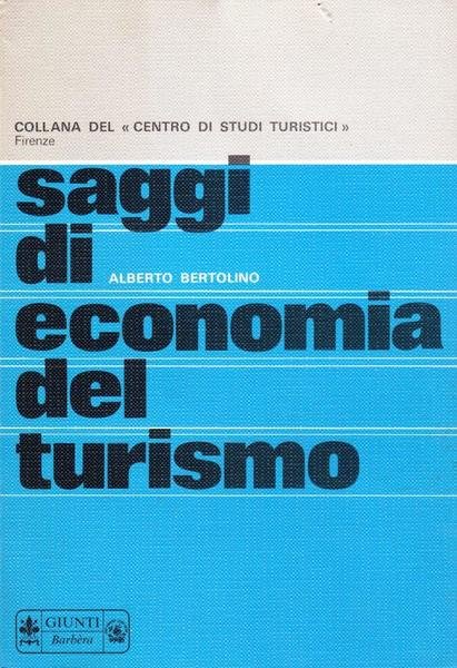 Saggi di economia del turismo, edizione 1974, pp. 248, formato 14 x 20,5.<BR>Copertina morbida di colore blu e grigio con titoli in nero al piatto anteriore e sul dorso. Saggio Introduttivo di A. Gay. Volume facente parte della collana "Centro di Studi Turistici" diretta da Piero Barucci. <BR>Ottime condizioni.