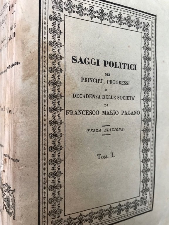 Saggi politici dei principj, progressi e decadenza delle società. | Libri antichi e moderni | Pagano Mario.