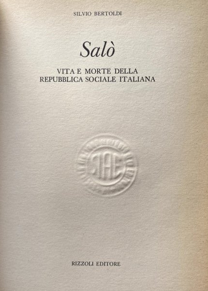SALÒ. VITA E MORTE DELLA REPUBBLICA SOCIALE ITALIANA | Libri antichi e moderni | Silvio Bertoldi