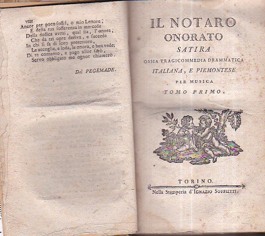 Satire ossia tragicommedie italiane, e piemontesi. Il Notaro onorato. Satira ossia tragicommedia drammatica italiana, e piemontese per musica - L' Adelasia. Satira ossia tragicommedia drammatica italiana, e piemontese per musica - L' Adelaide Regina d' Italia, e poi Imperatrice tragicommedia italiana, e piemontese per musica