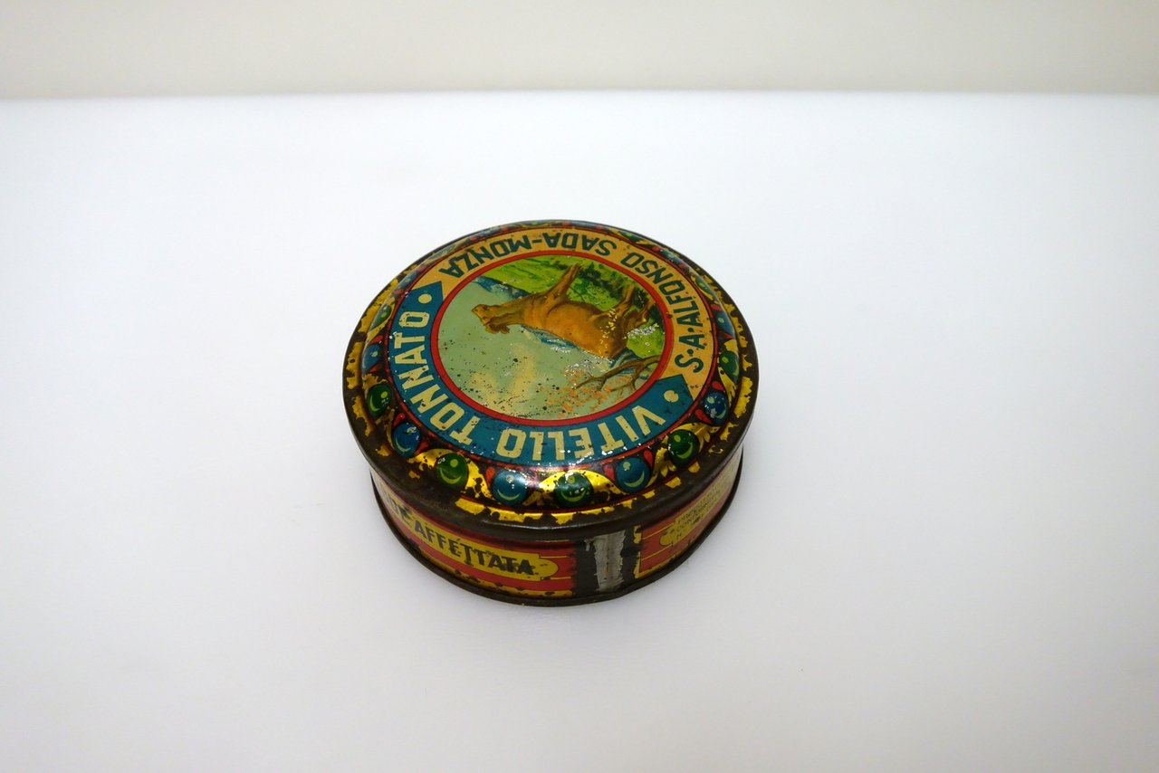 Scatola di Latta Cromolitografica S.A. Alfonso Sada Monza Vitello Tonnato 1929