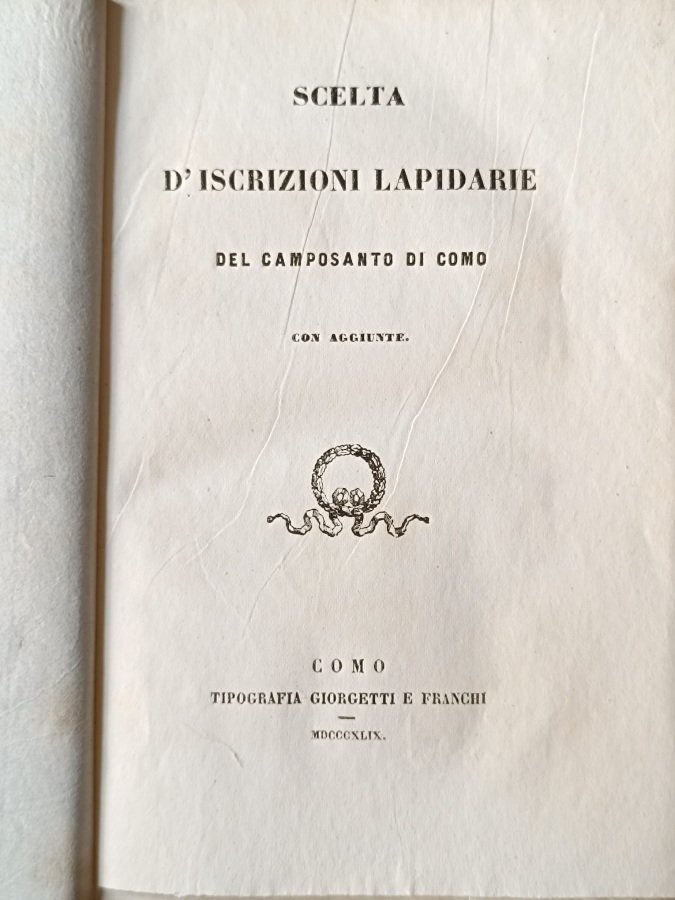 Scelta d'iscrizioni lapidarie del camposanto di Como. Con aggiunte. | Libri antichi e moderni | [Monti Maurizio].