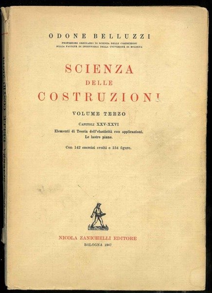 Scienza delle costruzioni. Volume terzo. Capitoli XXV-XXVI. | Libri antichi e moderni | Belluzzi, Odone.