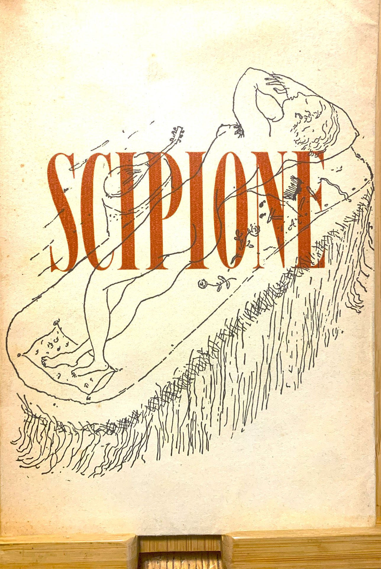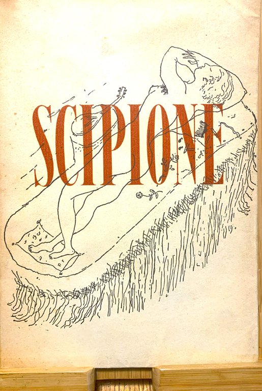 Edizione numerata di 990 esemplari stampati in occasione della 61ª mostra del Cavallino dedicata a Scipione (3-23 marzo 1945), con dipinti e disegni della collezione Cardazzo - Venezia (esemplare 210). Indice: saggio introduttivo - Nota biografica - Tavole (Xi tavole con altrettante riproduzioni fotografiche in b/n delle opere dell'Artista) - Indice delle tavole. In-8 piccolo, pp. (26)+XI tavole in carta patinata+(8), brossura, sovraccoperta in carta chiara con titolo in rosso al primo piatto e uguale illustrazione in nero ai piatti (Scipione, "Giugno", disegno dalla serie "I 12 mesi di Scipione"). Stato buono (sovraccopeerta leggermente ingiallita, in particolare ai margini e al dorso - pagine leggermente ingiallite, in particolare ai margini)