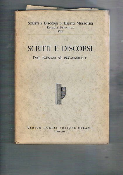 Scritti e discorsi di Benito Mussolini dal 1932-X-XI al 1933-XI-XII E.F. | Libri antichi e moderni |