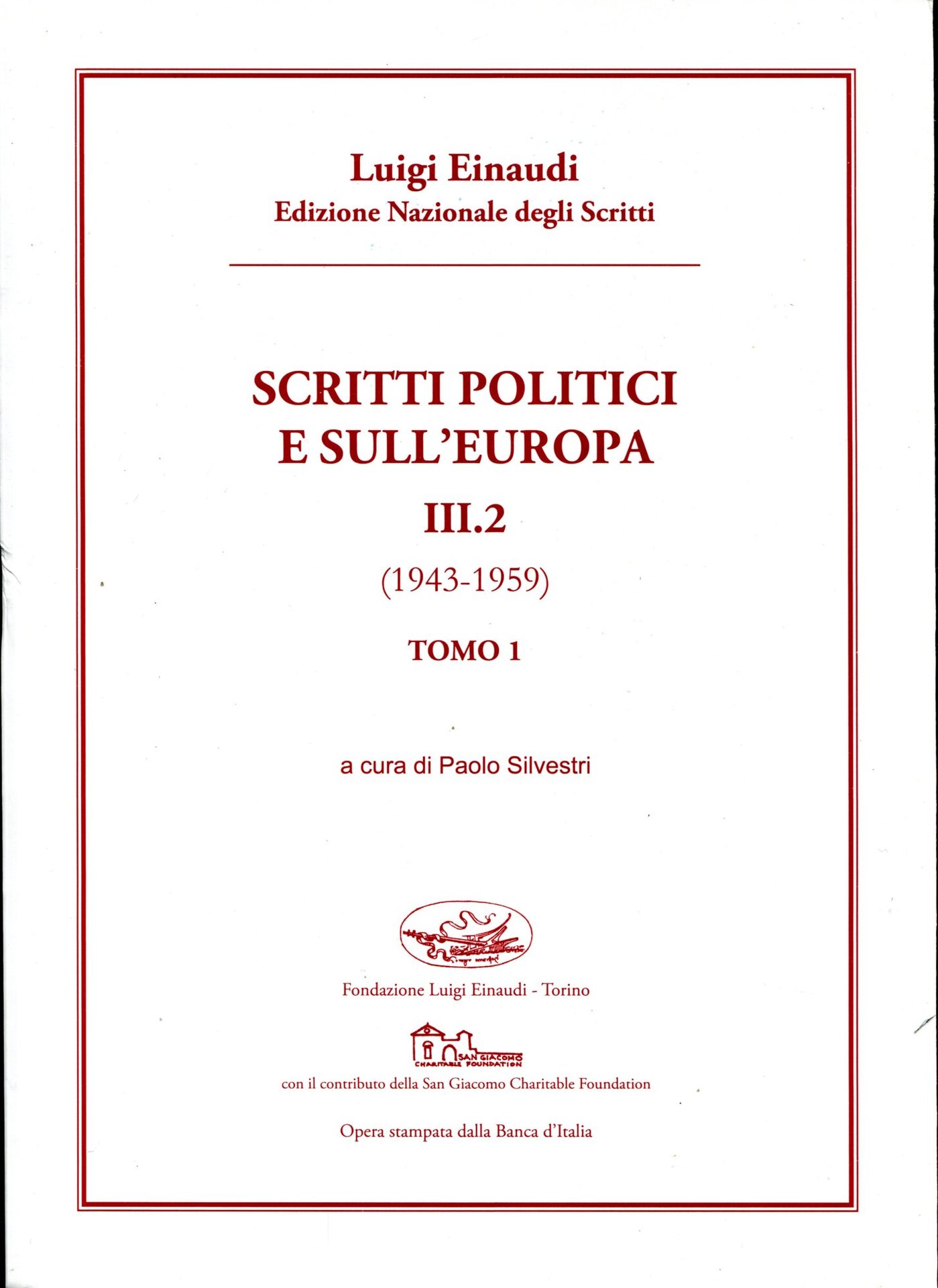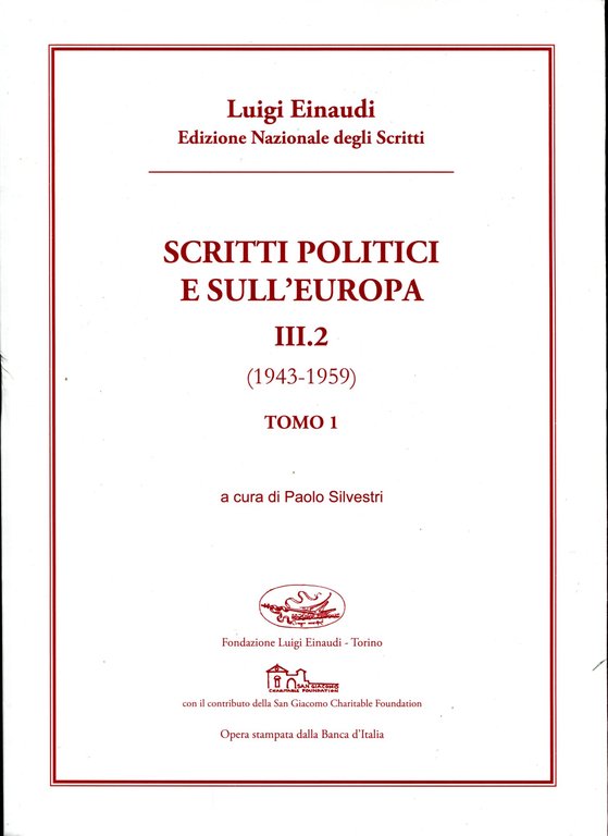 Scritti politici e sull'Europa} III.2. Tomo 1 e 2 (1943-1959). Silvestri Paolo a cura di | Libri antichi e moderni | Luigi Einaudi, ,Luigi Einaudi