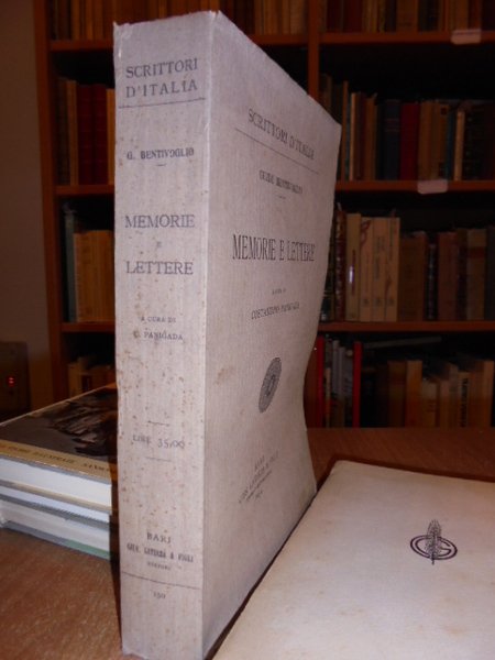 Guido, Bentivoglio. Bari, Gius. Laterza & Figli, 1934. (Scrittori d' Italia) Memorie e Lettere. In - 8°, br. orig. 477 pp. Ben conservato. Neg. mob. 16