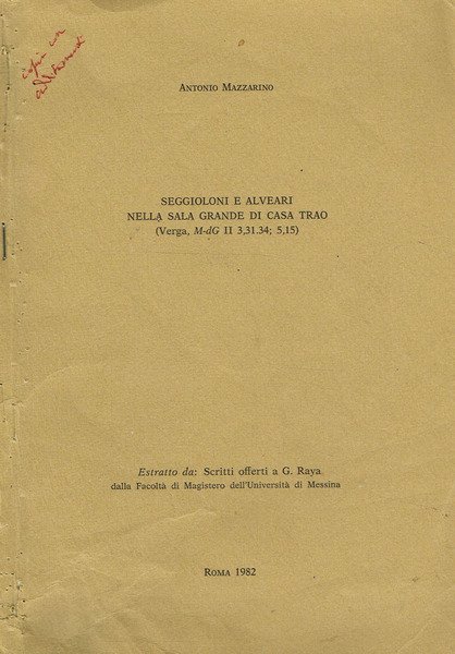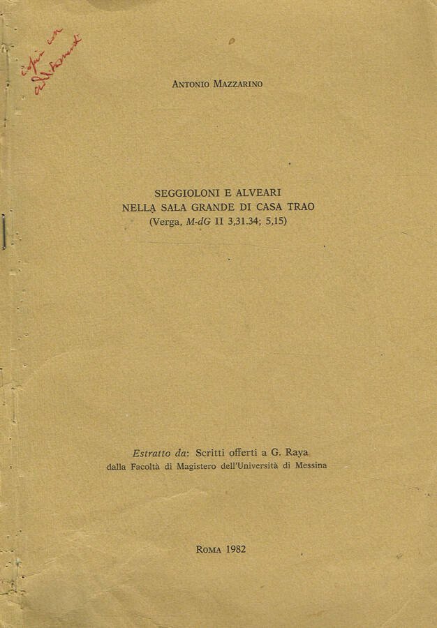 SEGGIOLONI E ALVEARI NELLA SALA GRANDE DI CASA TRAO (VERGA, M-Dg ii 3,31.34; 5,15) | Libri antichi e moderni | Antonio Mazzarino