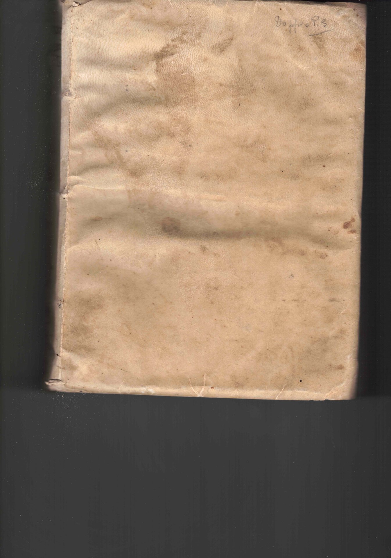In 8°, p. perg. molle, cc.nn. 16 + pp.439. Front. fig. Finaline. Testata. Cop. semisciolta. La p. 387/388 evidenzia uno strappo che lede il t. ma non ne impedisce la lettura. Mende al d. Disp. della sola prima parte. Antichi forellini che interessano diverse lettere.