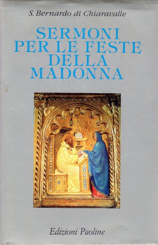 Sermoni per le feste della Madonna, prima edizione 1990, pp. 300, formato 13 x 20.<BR>Copertina rigida di colore blu con titoli in oro al piatto anteriore e sul dorso. Sovraccoperta illustrata (Apparizione della Vergine a San Bernardo). Introduzione e note di Giorgio Picasso. Traduzione di Luigi Scanu.<BR>Ottime condizioni.