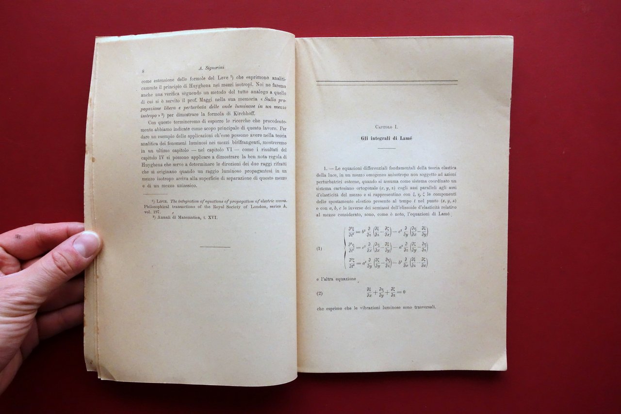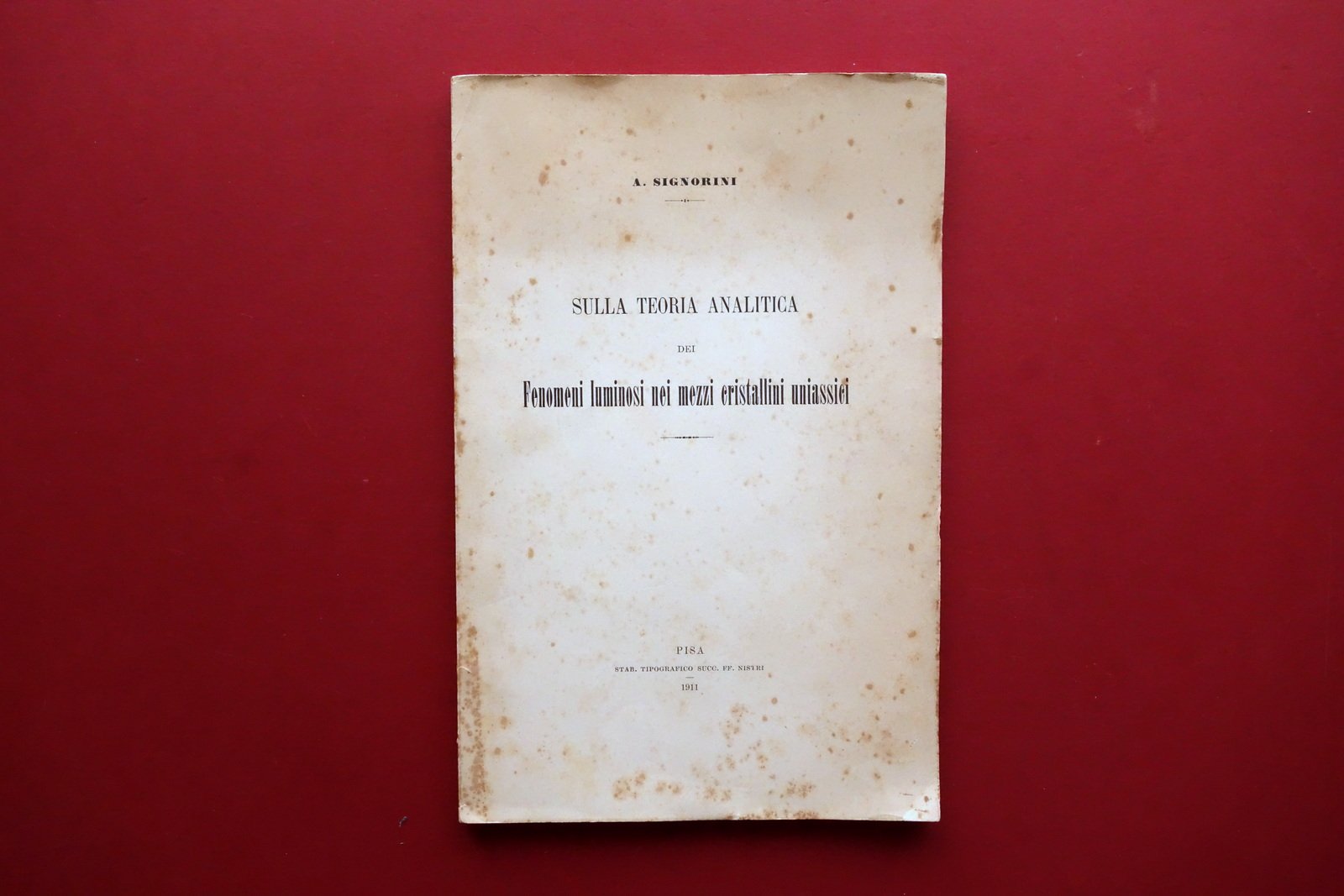 Signorini Sulla Teoria Analitica dei Fenomeni Luminosi nei Cristallini Pisa 1911 | Libri antichi e moderni |