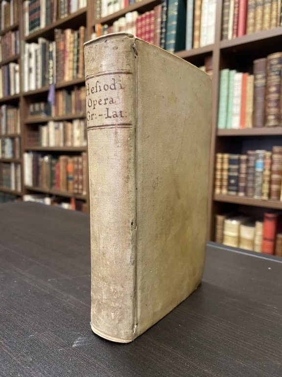 <span style="font-style: normal;">In-12° (cm. 16), legatura coeva in piena pergamena rigida con titolo manoscritto al dorso, tagli spruzzati; pp. [32] 163 [9], [4] 183 [9] in ottimo stato; primo frontespizio in rosso e nero, la seconda parte con titolo proprio </span><i>Lectiones Hesiodeae</i>; carattere greco e latino; qualche lievissima fioritura. Ottimo esemplare. (SA4)