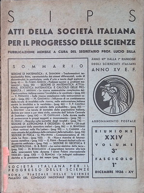 SIPS. Atti della società italiana per il progresso delle scienze. Riunione XXIV, vol.3, fascicolo 1, dicembre 1936-XV | Libri antichi e moderni |