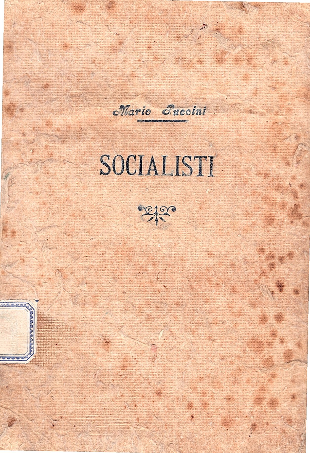 In-8° (24x17 cm), pp. (46), tela bambagiata con titoli impressi in blu al piatto anteriore. Marca-motto 'Illuminare' al frontespizio rifilato al margine esterno con minime perdite testuali. Minime fioriture ai piatti ma buon esemplare non conservante i piatti della brossura originale. Romanzo pubblicato nella rivista 'Romantica' che era formata da numeri monografici. Questo Socialisti è una prima versione di una parte di testo che rielaborata e ampliata sarà alla base del romanzo 'La terra è di tutti (Prima vita di Cornelio)' (Vallecchi 1957) insieme al racconto lungo 'Caratteri' uscito nel 1921.