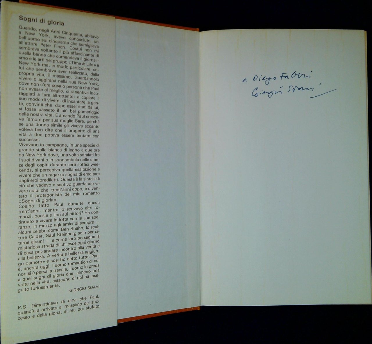 Soavi, Giorgio Sogni di gloria. Milano, Rizzoli 1980, 131 p. ; 22 cm dedica autografa dell'autore a importante letterato italiano (47182)