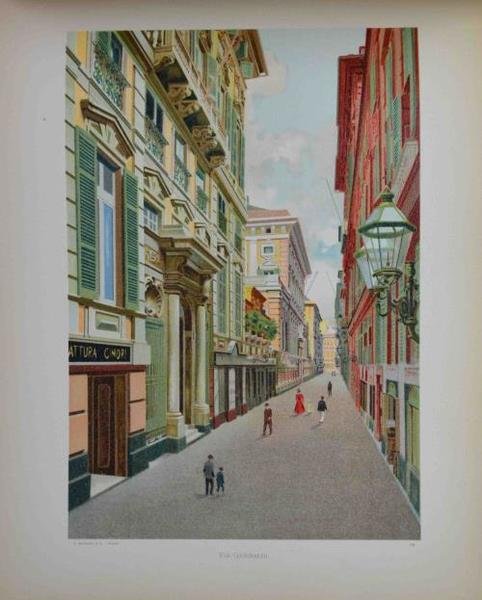 Album di cm. 31 x 23 contenente 15 tavole in cromolitografia. Bella brossura edit. illustrata a colori. Qualche traccia d'uso alla cop., peraltro ben conservato. Bella e rara raccolta di vedute della città di Genova.