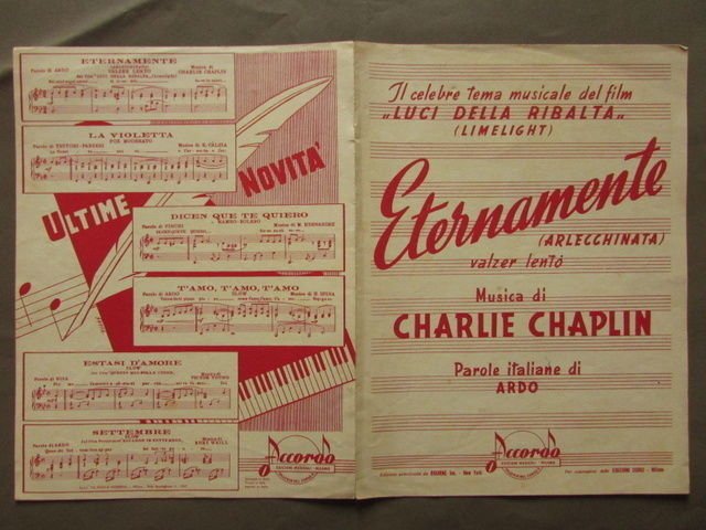 Spartito Eternamente Luci Ribalta Chaplin Valzer Ardo Musica New York 1952