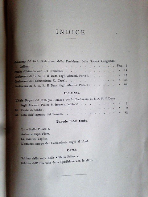 Spedizione italiana nel Mare Artico sulla " Stella Polare ". Conferenza di S. A. R. il Duca degli Abruzzi e del Comandante Umberto Cagni tenuta in Roma sotto gli auspici della Società Geografica Italiana (14 gennaio 1901) | Libri antichi e moderni | S. A. R. il Duca degli Abruzzi - Cagni, Comandante Umberto: co, ,S. A. R. il Duca degli Abruzzi - Cagni, Comandante Umberto: c
