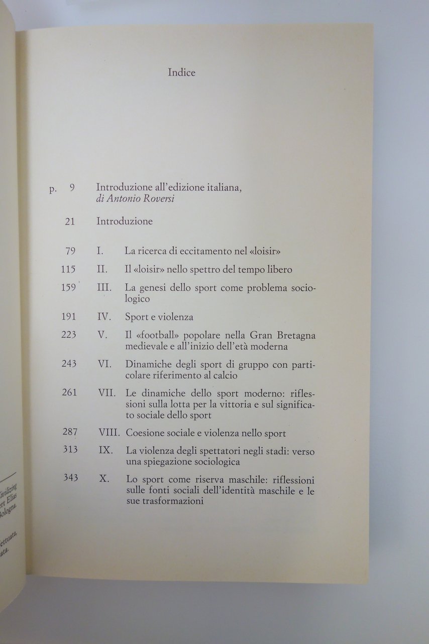 SPORT E AGGRESSIVITA' RICERCA ECCITAMENTO LOISIR IL MULINO ELIAS DUNNING | Libri antichi e moderni |