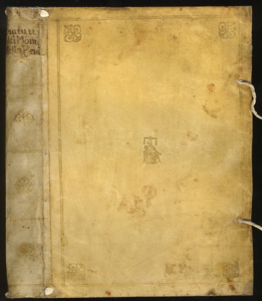 Due titoli legati in un volume, in-4, legatura coeva in piena pergamena floscia, piatti inquadrati da cornice a doppio filetto con singoli ferri fitomorfi negli angoli interni e una piccola figura raffigurante la Pietà al centro degli specchi, il tutto impresso in oro; dorso liscio con nervi simulati da filetti dorati, ferri floreali negli scomparti (gli stessi usati agli angoli sui piatti) e titolo manoscritto in antico; legacci in pergamena ai piatti (i legacci sono stati rifatti), tagli rossi. Seconda edizione. Opere importanti per l'economia di Roma e per la storia del pensiero economico della Chiesa Cattolica.