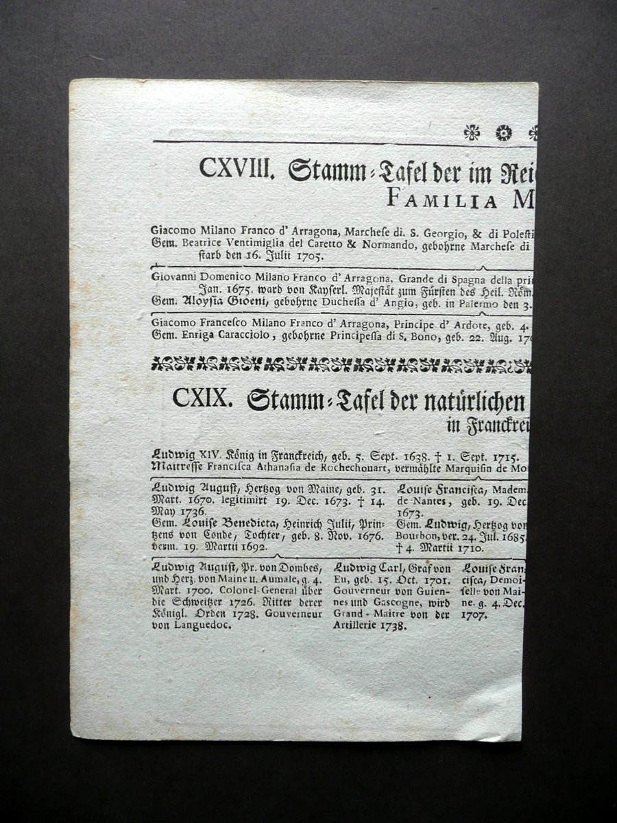 Stemma araldico, Wappen des Reichs Fursten von Milano S. d. (primo '800 circa); bello stemma araldico inciso in b/n su foglio in carta, proveniente da pubblicazione in tedesco (testo al retro). Cm 19,5x13,5. Condizioni di conservazione Esemplare ben conservato con tracce d'uso, piccole leggere bruniture, margini rifilati. SC03.D13148 N