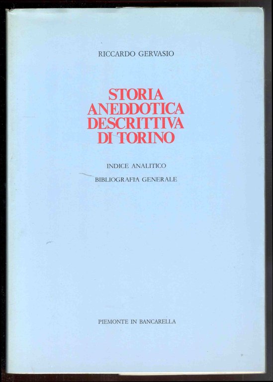 Storia Aneddotica descrittiva di Torino. Indice analitico. Bibliografia generale | Libri antichi e moderni | Gervasio, Riccardo