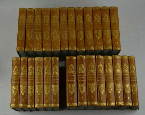 Otto volumi di pp. 3.000 ca. complessive. Unito a: BOTTA C. Storia d'Italia continuata da quella del Guicciardini sino al 1789… Capolago, 1832-33. Dodici volumi pp. 5000 ca. complessive. Unito a: BOTTA C. Storia d'Italia dal 1789 al 1814. Capolago, 1833. Sei volumi di pp. 2.200 ca. complessive. Insieme di 26 volumi di cm. 16,5, solida ed elegante legatura coeva uniforme in mezza pelle, dorsi lisci con titoli e fregi in oro. Solo qualche fioritura sparsa, ma complessivamente esemplare genuino e ben conservato. .